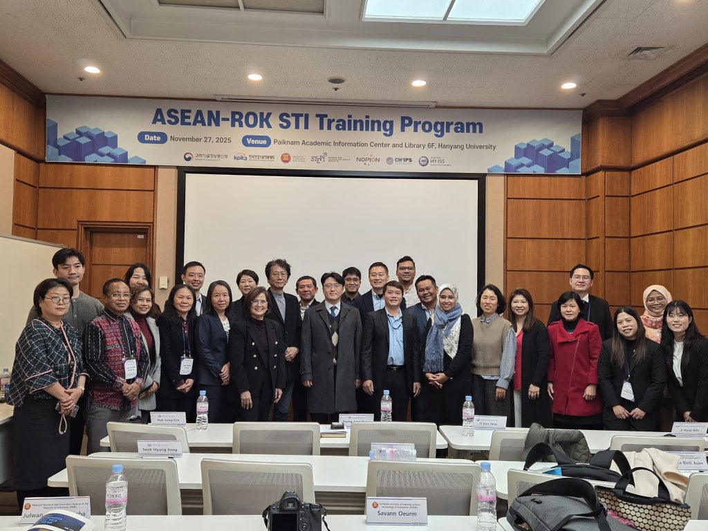 Representatives from all 11 ASEAN Member States gathered in Seoul on 23–30 November for the 2025 ASEAN–ROK STI Training Programme. The programme provided valuable insights into Korea’s innovation ecosystem, ranging from gifted education and STI policy development to start-up support, semiconductor R&D, and high-tech cluster development.
